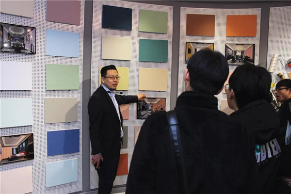 參觀完總部后,在解說員的帶領(lǐng)下,河北環(huán)境工程學(xué)院一行人來到了我公司品牌體驗展示中心。對于我司相關(guān)環(huán)保產(chǎn)品大家都還比較陌生,常凱常總、李勇劍李總分別對室內(nèi)污染物治理展廳、企業(yè)綠色裝飾材料展廳進(jìn)行了細(xì)致介紹,讓大家對凈化原理及環(huán)保材料等有了一個全新的認(rèn)識!